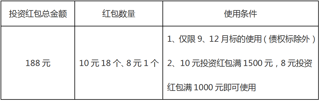 2、本次派发出借红包有效期为8天,债权标不参与活动;